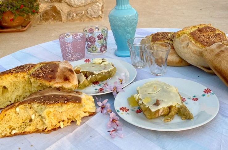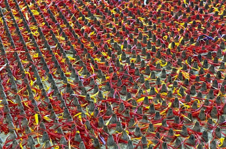 Bei der Ernte bleiben die Safranfäden an einer Matte mit Noppen hängen und können so bequem eingesammelt werden.