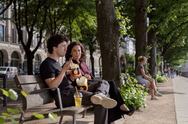 Rechtsanwältin Anna Conti (Désirée Nosbusch) und ihr Mitarbeiter Carlo (Maximilian Mundt) sprechen während einer kurzen Mittagspause über ihren Mandanten Frank Stolpe.