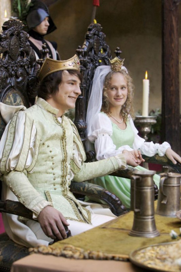 Das frischvermählte Königspaar (Sebastian Fischer, Marie-Christine Friedrich) ahnt noch nichts von der drohenden Gefahr - dem Rumpelstilzchen.