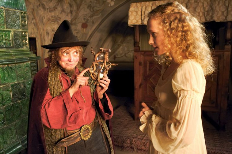 Wenn die Sanduhr abgelaufen ist, will Rumpelstilzchen (Katharina Thalbach) das Kind der Königin (Marie-Christine Friedrich) mitnehmen.