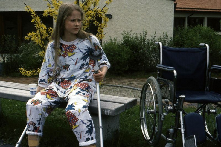 Anna Pelzer (Silvia Seidel) hat Mut gefasst und übt verbissen mit ihren Krücken.