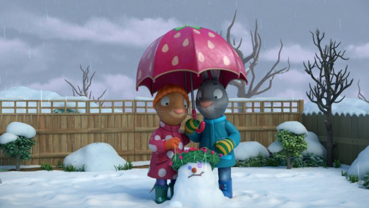 Es hat geschneit, und Pip und Posy bauen einen lustigen Schneemann, den sie "Schneeflöckchen, Weißröckchen" taufen. Plötzlich beginnt es, zu regnen, und der Schneemann ist in Gefahr.