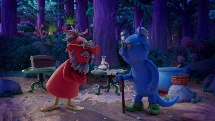 Schnett Grete (r.) trifft im Wald auf den Schmoo Bernd (l.). Beide sind erstmal nicht erfreut.