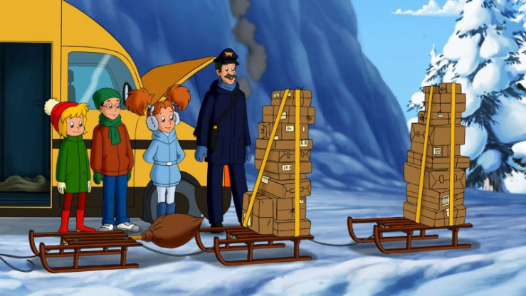 Wie sollen sonst die ganzen Päckchen und Briefe zu ihren Empfängern gelangen? Kurzerhand hext Bibi die Schlitten aneinander und liefert gemeinsam mit dem verdutzten Postboten per Luftpost alles an die gewünschten Adressen. Bibi hofft, dass auch ihr Paket dabei ist.