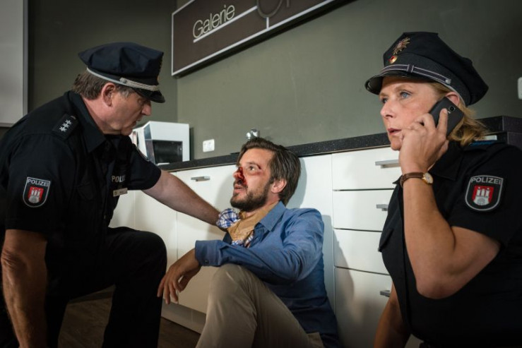 Tischlermeister Gerd Reimann liegt mit Herzinfarkt in seiner Werkstatt und konnte gerade noch den Notruf wählen. Den Polizisten erzählt er, sein Schwiegersohn Jan Keller habe ihn bestohlen.