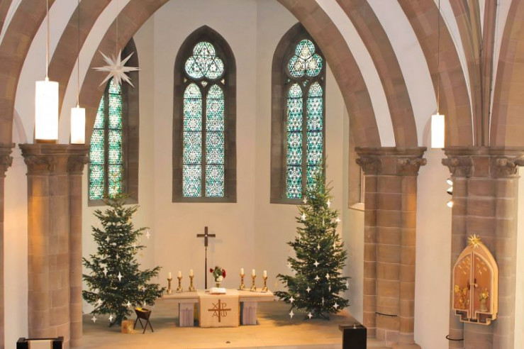 Weihnachtliche Beleuchtung in der evangelischen Christuskirche