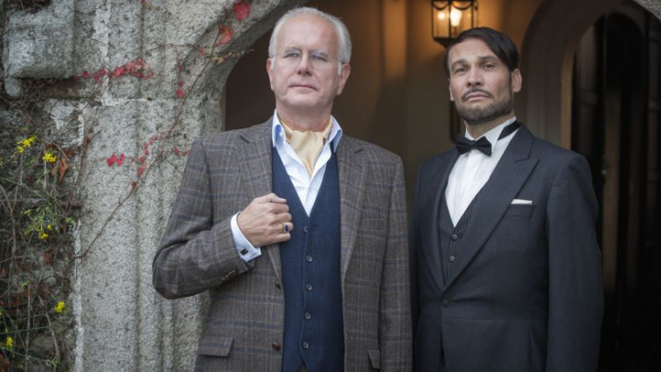 "Rosamunde Pilcher: Ein Doktor & drei Frauen": Der hypochondrische Lord Hurrleton (Harald Schmidt, l.) wartet neugierig auf die Ankunft des neuen Arztes. Hinter ihm steht sein Butler Arnold (Alexander Klaus Stecher, r.).