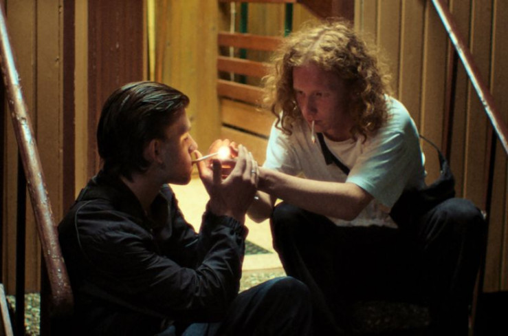 Toni (Elias Maria Burckhardt, r.) und Marvin (Valentin Oppermann, l.) rauchen alleine vor der Bar. Toni bewundert Marvins Selbstsicherheit und fragt sich selbst: "Wer und wie will ich sein? Was macht mich glücklich?"