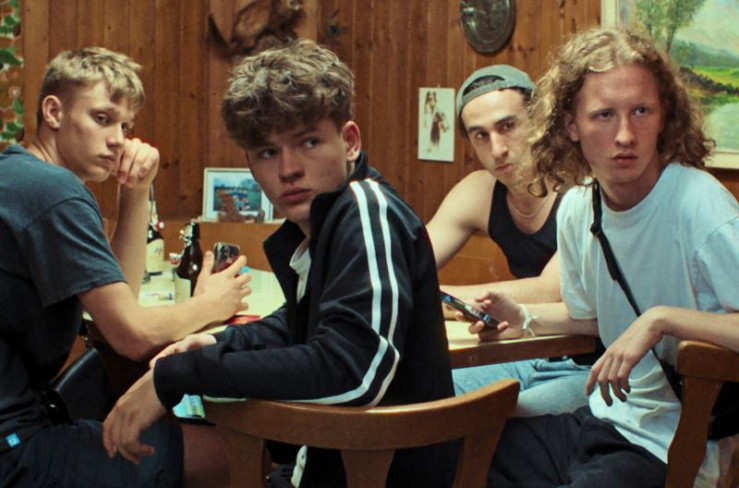 Immer schön cool bleiben, alles spöttisch bewerten und sich selbst keine Blöße geben, das sind die Überlebensregeln in der Gruppe. Kein Wunder, dass es was zu schauen gibt, als sich Marvin traut, aus der Reihe zu tanzen. V.l.n.r.: Julian (Tristán López), Dominik (Mikke Rasch), Luca (Zlatin Stoychev), Toni (Elias Maria Burckhardt)