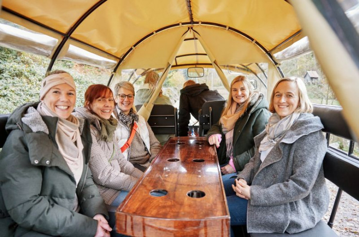 Die Landfrauen stoßen mit Sören Anders auf ihr Weihnachtsmenü an. v.li: Anne-Christin Trautwein, Sören Anders, Michaela Pistono, Petra Waldraff, Lara Jenner, Sonja Müller