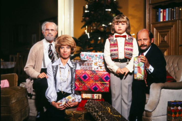 Weihnachten bei Hoppenstedts, unterm Tannenbaum (v.l.n.r.) Bernhard-Viktor Christoph-Carl von Bülow, Vicco von Bülow, Loriot, Evelyn Hamann, Katja Bogdanski, Heinz Meier