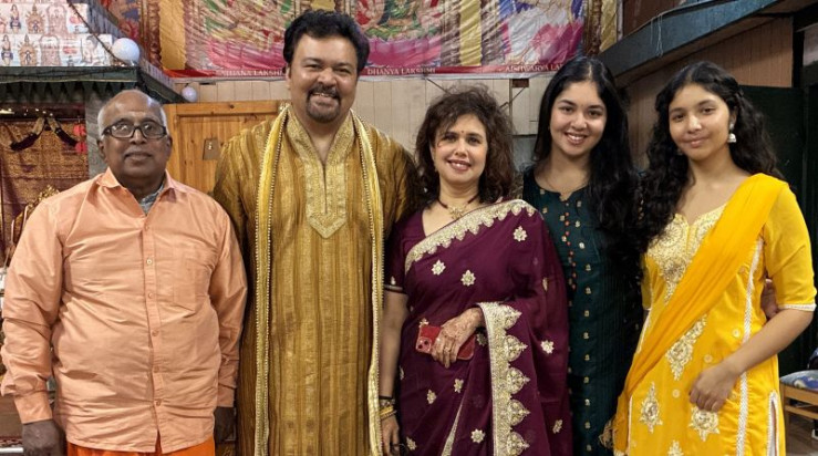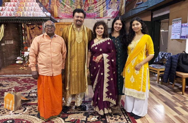 Religion ist Privatsache, sagen die einen. Andere zeigen ihren Glauben ganz offen. Menschen mit Turban, Kopftuch, Kippa und Ordenskleid begegnen uns im Alltag immer wieder. Warum machen sie ihren persönlichen Glauben so sichtbar? Und wie fühlt es sich an, als religiöser Mensch erkennbar zu sein? Wir haben fünf Menschen aus fünf Religionen gefragt. - Vilwanathan Krishnamurthy (l.) mit Familie Prabhu im Sri Ganesha Hindu Tempel.