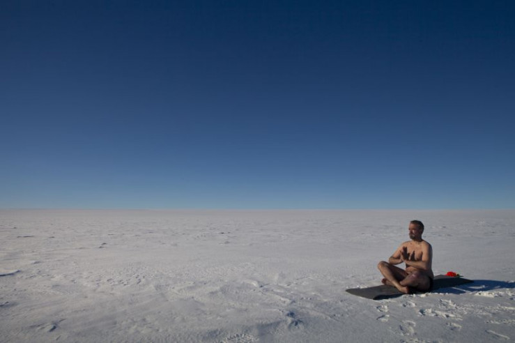 "Es sollte hier nicht so warm sein": Prof. Jason Box beim Yoga während seiner Expedition ins Grönländische Inlandeis.