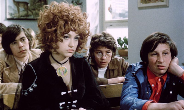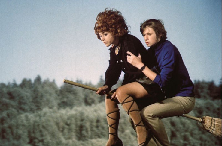Als die Hexenmeisterin (Ludmila Píchová, links) Saxana zum Schuldirektor (Josef Bláha, rechts) bringt, verordnet dieser 300 Jahre Nachsitzen.