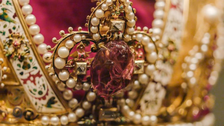 Detail der Kaiserkrone, Kaiserliche Schatzkammer in der Wiener Hofburg.
