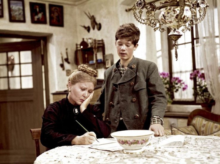 Die leidgeprüfte Thoma (Käthe Braun) muss ihren Sohn Ludwig (Hansi Kraus) aufs Internat schicken. Weiteres Bildmaterial finden Sie unter www.br-foto.de.