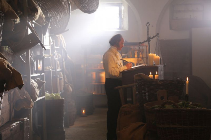 Der Nürnberger Kaufmann Paul Wolfgang Merkel (Andreas Leopold Schadt) in seinem Kontor.
