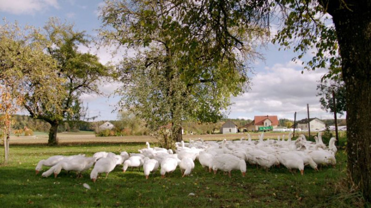 In Thonlohe am Geflügelhof von Maria und Max Biedermann lässt man nichts verkommen. Deshalb gibt es dort ab Kirchweih nur die Gans im Ganzen zu kaufen. So wie immer schon werden Flügel, Herz und Magen sowie der Kragen beim Verkauf zur Gans in die Leibeshöhle gesteckt. Der Kunde aus dem nahen Riedenburg Fritz Graf und seine Frau Margit zeigen, wie man die Kragenhaut löst, sie mit Fleisch, den Innereien und allerlei Gemüse- und Kräuterzutaten füllt, zunäht und brät.
