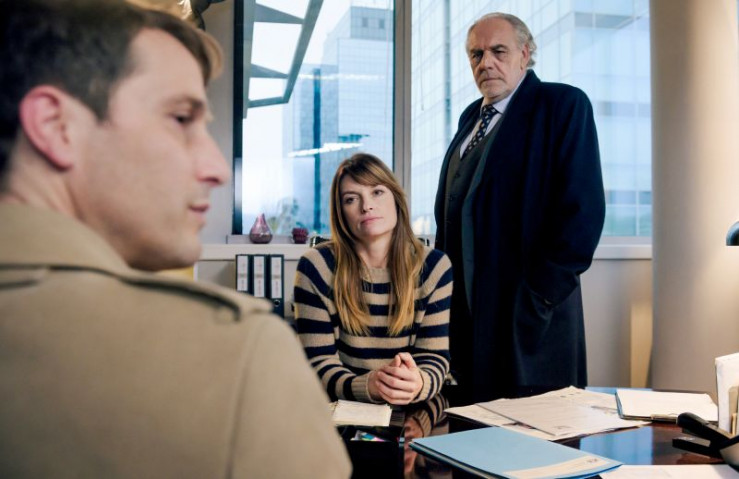 Borchert (Christian Kohlund, rechts) zeigt seinem Mandanten Xavier Schliemann (David Rott, links) ein Foto.