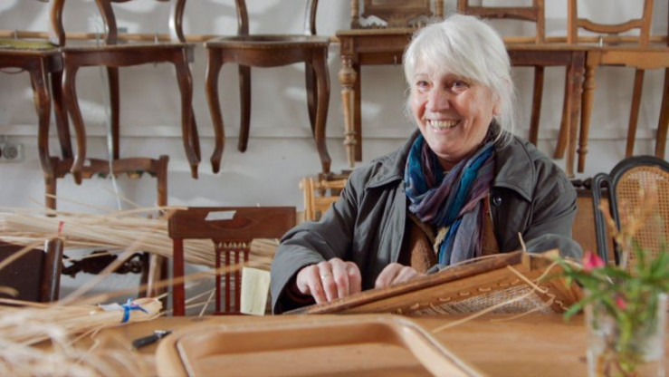 In einer ehemaligen Scheune restauriert Brigitte Meffert Stühle.
