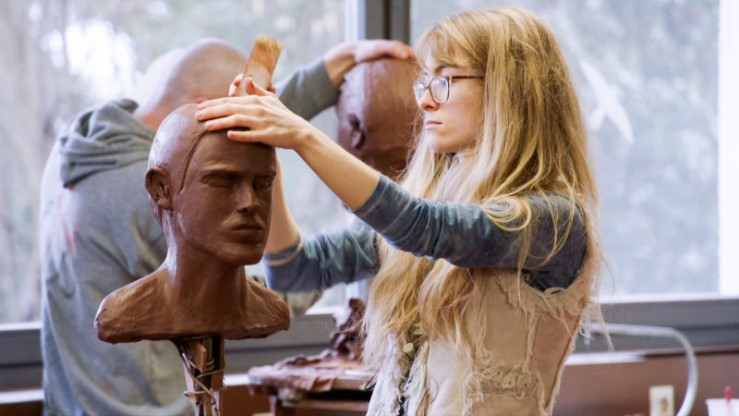 Schülerinnen und Schüler an der staatlichen Berufsfachschule für Holzbildhauer in Bischofsheim.
