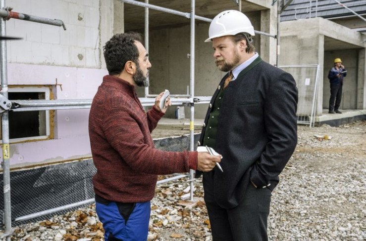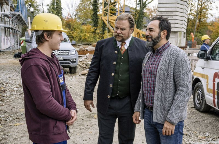 Der tüchtige Handwerker Toni (Adnan Maral, re.) mit seinem Mitarbeiter Maxl (Justus Schlingensiepen) und seinem Auftraggeber Leo Seidel (Michael A. Grimm, re.).