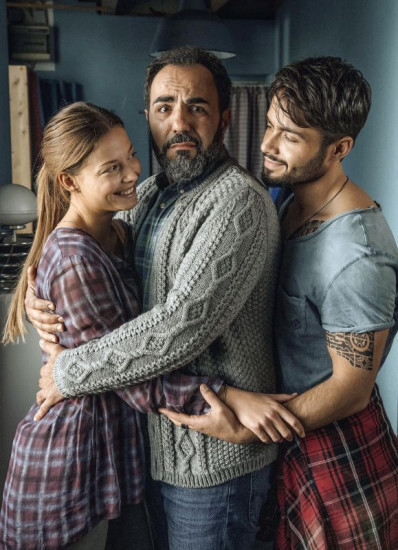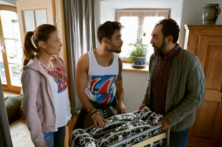 Toni (Adnan Maral) stellt sich zwischen seine Tochter Franzi (Lena Meckel) und ihren Verlobten Osman (Aram Arami).
