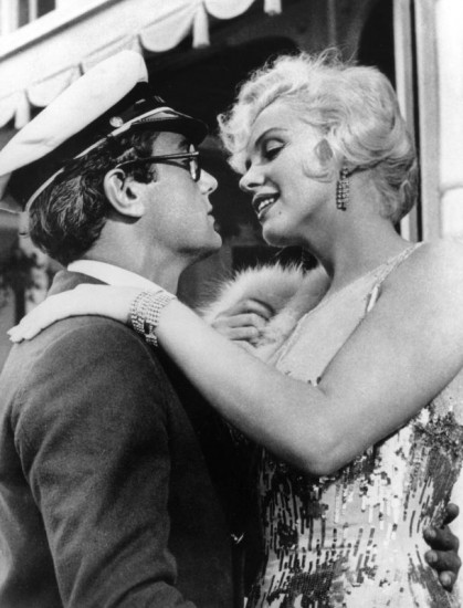 Auf der Flucht vor einer Gangsterbande geben sich die beiden Bar-Musiker Jerry (Jack Lemmon, li.) alias "Daphne" und Joe (Tony Curtis) alias "Josephine" als Frauen aus.