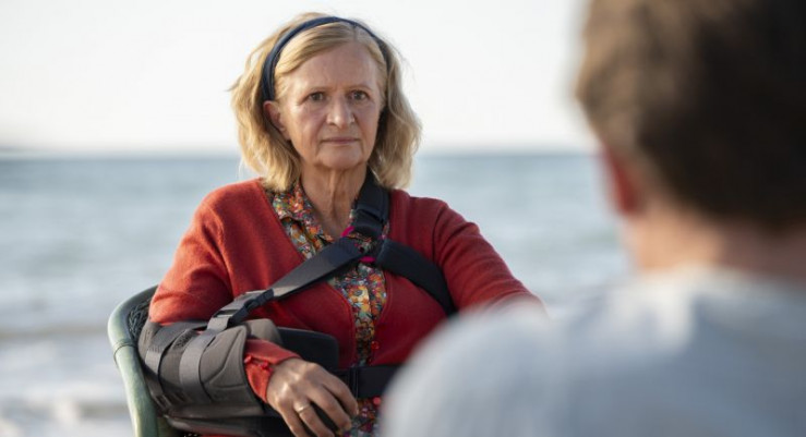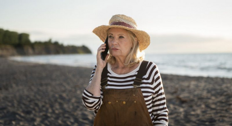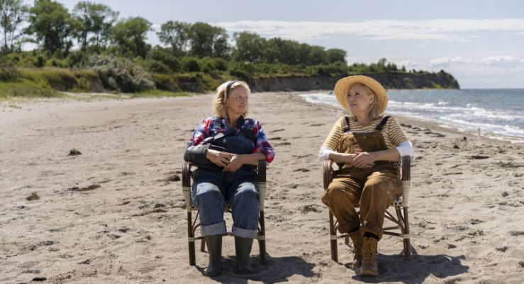 Bäuerin Gesine Bröker (Johanna Gastdorf, li.) und Isa (Sabine Postel, re.) genießen eine kurze Auszeit am Strand.