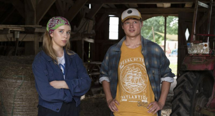 Svenja Hansen (Johanna Götting) erklärt Feriengast Leon Gebhard (Johannes Degen) die Arbeiten auf dem Hof