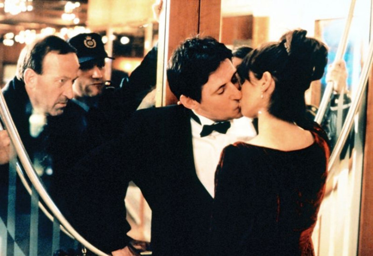 Smilla Jaspersen (Julia Ormond) und ihr geheimnisvoller Nachbar (Gabriel Byrne) haben sich verliebt und tricksen gemeinsam den Polizisten Ravn (Bob Peck, li.) aus.
