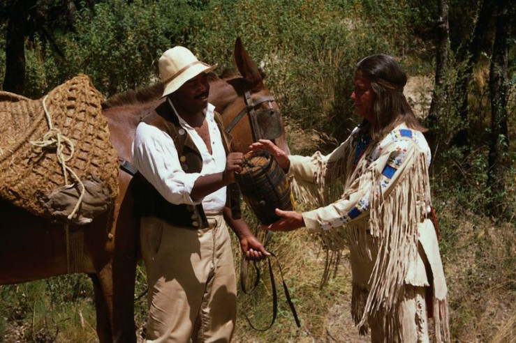 Winnetou (Pierre Brice) überlistet die Holzfäller mit einem alten Indianertrick.
