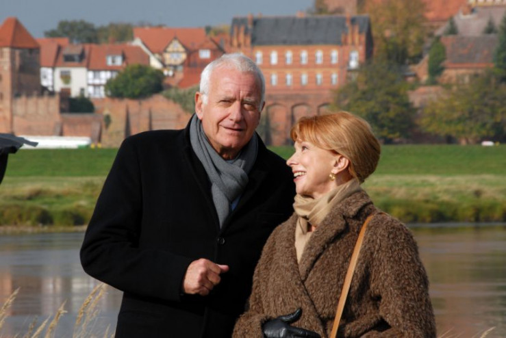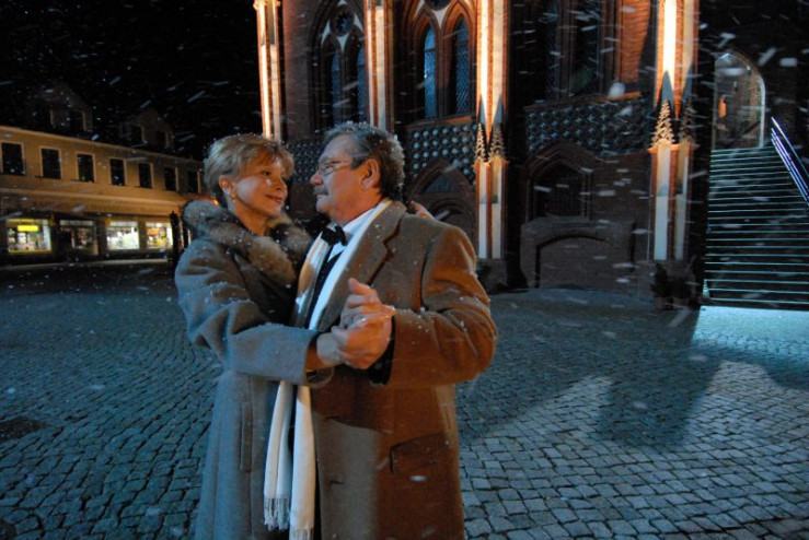 Ella und Manfred tanzen Tango in einer Winterlandschaft. Ursela Monn (Ella Talbach), Wolfgang Winkler (Manfred Talbach).