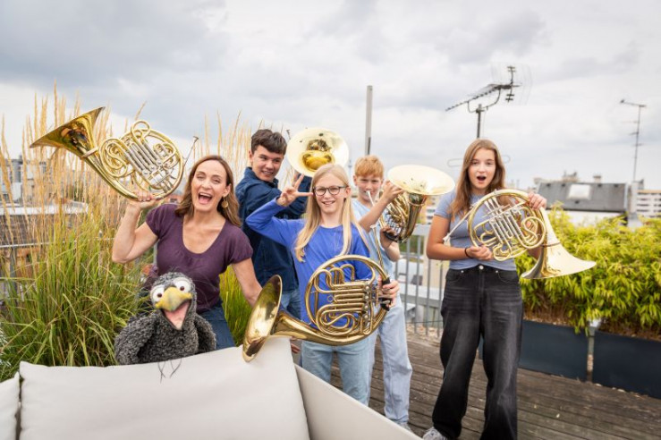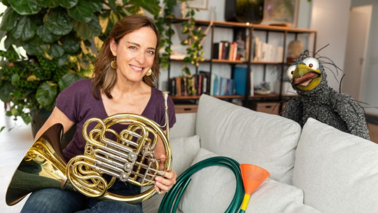 Acht Rudis (Lennart Morgenstern) oder zwei Sarahs: So lang ist ein Horn von Sarah Willis, wenn man es auseinanderrollen würde. Aber vor allem kann man damit die tollste Musik machen. © ZDF/Adam Kaiser-Lynch - Honorarfreie Verwendung gemäß AGB im redaktionellen Zusammenhang mit genannter Sendung bei Nennung "Bild: ZDF/Adam Kaiser-Lynch" einschließlich Social Media Einschließlich Social Media© ZDF/Adam Kaiser-Lynch - Honorarfreie Verwendung gemäß AGB im redaktionellen Zusammenhang mit genannter Sendung bei Nennung "Bild: ZDF/Adam Kaiser-Lynch" einschließlich Social Media Einschließlich Social Media