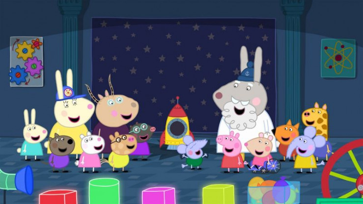 Peppa und ihre Freunde machen einen Ausflug zu einem Wissenschaftsmuseum. Dort gibt es so Einiges zu entdecken und zu testen. Opi Mümmel (re.) ist auch vor Ort und bringt den Kindern etwas über Triebkraft bei, als er seine Rakete präsentiert. +++ Die Verwendung des sendungsbezogenen Materials ist nur mit dem Hinweis und Verlinkung auf RTL+ gestattet. +++