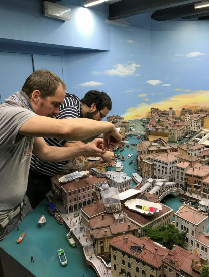 Felix und ein Kollege lassen Modelle zu Wasser.