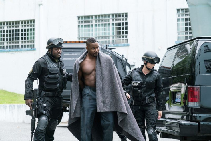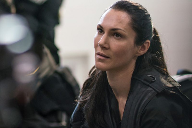 Travis Hall (Sam Jaeger), Ellen Dwyer (Adrianne Palicki), Scorpion (Michael Jai White, vorne)