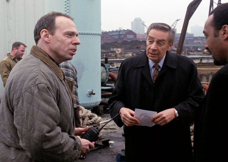 Detective Lennie Briscoe (Jerry Orbach, l.), Serena Southerlyn (Elisabeth Röhm) und Detective Ed Green (Jesse L. Martin) +++ Die Verwendung des sendungsbezogenen Materials ist nur mit dem Hinweis und Verlinkung auf RTL+ gestattet. +++