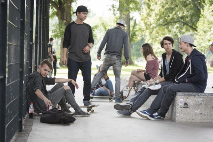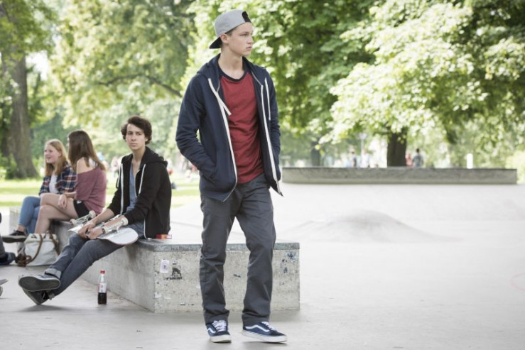 Jonas (Damian Hardung, r.) trifft sich regelmäßig mit seinen Skaterfreunden.