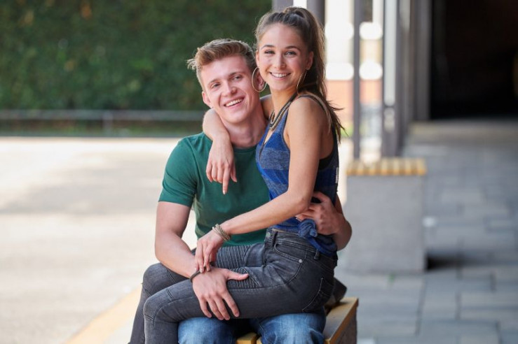 Dunja (Cosima Henman) und der neue Schüler Sascha (Lennart Betzgen) haben sich verliebt.