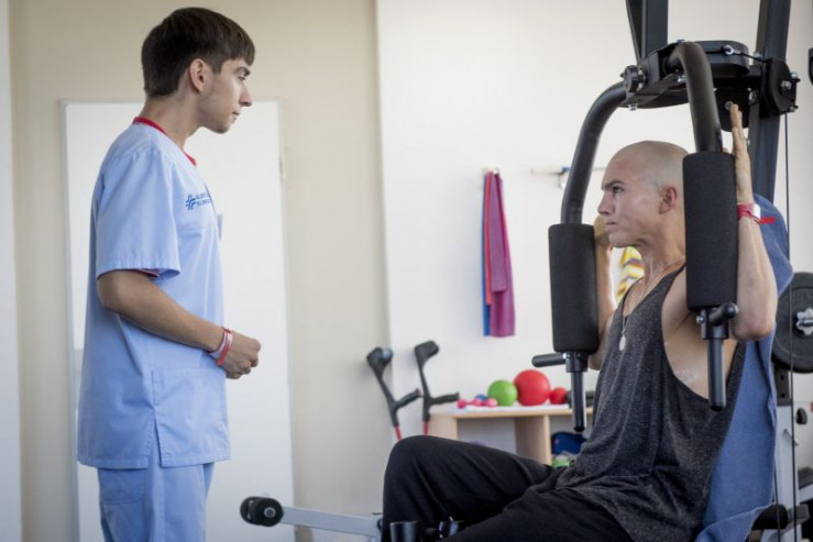 Leo (Tim Oliver Schultz) baut seinen Frust beim Fitness ab.