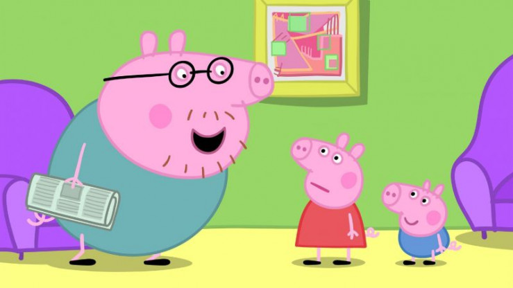 Mama Wutz (li.) backt heute einen Apfelkuchen. Während Familie Wutz gewartet hat, bis er fertig ist, haben Papa Wutz (hi.re.), Peppa (vo.re.) und Schorsch (vo.li.) ein Suchspiel gespielt. +++ Die Verwendung des sendungsbezogenen Materials ist nur mit dem Hinweis und Verlinkung auf RTL+ gestattet. +++