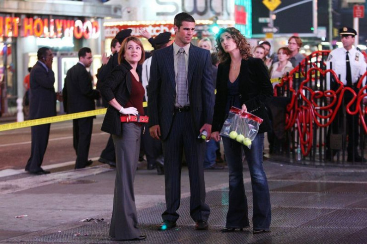 Lindsay (Anna Belknap, l.), Detective Don Flack (Eddie Cahill) und Detective Stella Bonasera (Melina Kanakaredes) werden zu einem makaber anmutenden Tatort gerufen: Ein Model liegt tot in einem ¬'berdimensionierten Martini-Glas am Times Square. +++ Die Verwendung des sendungsbezogenen Materials ist nur mit dem Hinweis und Verlinkung auf RTL+ gestattet. +++