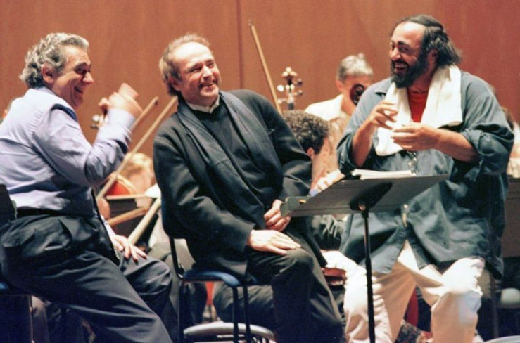 Die drei Tenöre Plácido Domingo, José Carreras und Luciano Pavarotti (v.l.) bei einer Probe