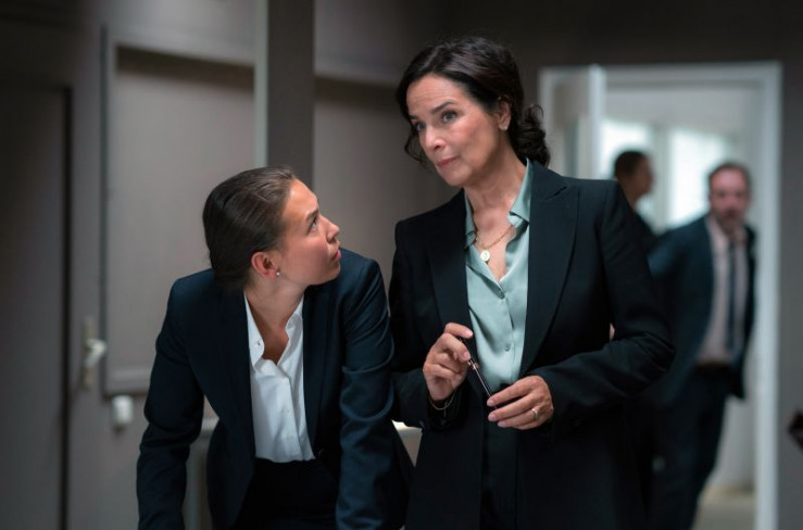 Staatsanwältin Henry Mahn (Malaya Stern Takeda, li.) und Rechtsanwältin Anna Conti (Désirée Nosbusch, re.) bei der Wahlgegenüberstellung