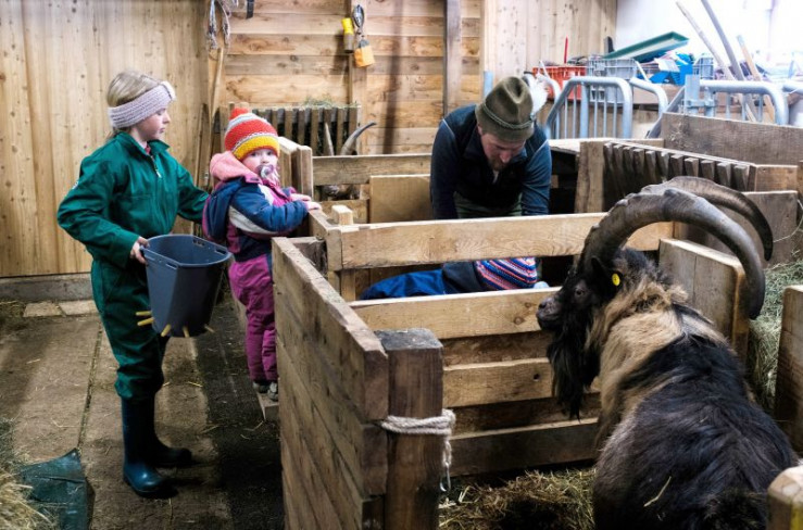Michl Raich und seine Töchter füttern die Passeirer Bergziegen.