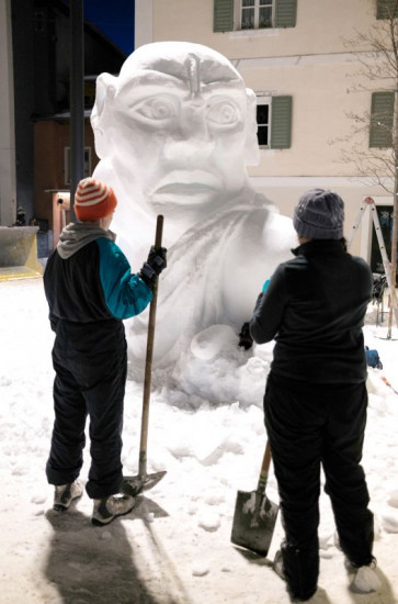 Ob die Schneeskulptur von Team Deutschland beim Snow-Festival in Innichen gewinnen wird?