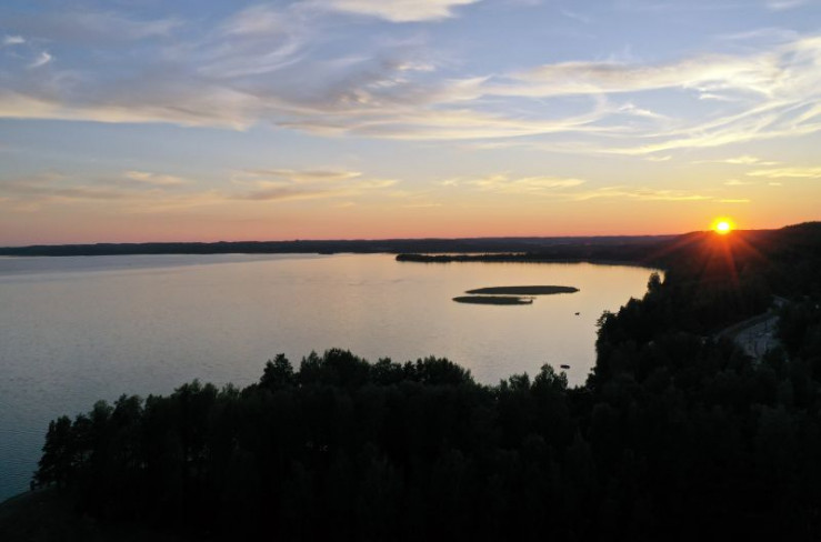 Sonnenuntergang auf der finnischen Seenplatte: Der Sommer läutet in Finnland eine unbeschwerte Zeit ein, die Nächte sind lang und die Sonne geht nur kurz unter.