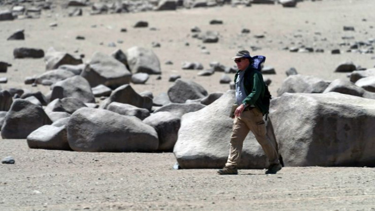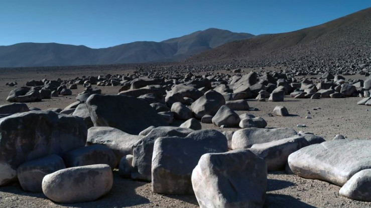 Rätselhafte Felsbrocken auf einer Ebene in der Atacama-Wüste in Chile. Einige Steine scheinen wie poliert.