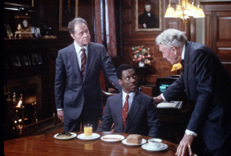 Die Brüder und erfolgreichen Geschäftsmänner Mortimer (Don Ameche, l.) und Randolph Duke (Ralph Bellamy, r.) haben es sich zur Aufgabe gemacht, dem Mittellosen Billy Ray Valentine (Eddie Murphy, M.) ihr Geschäft beizubringen. Doch ihre scheinbare Gutmütigkeit hat einen hohen Preis.